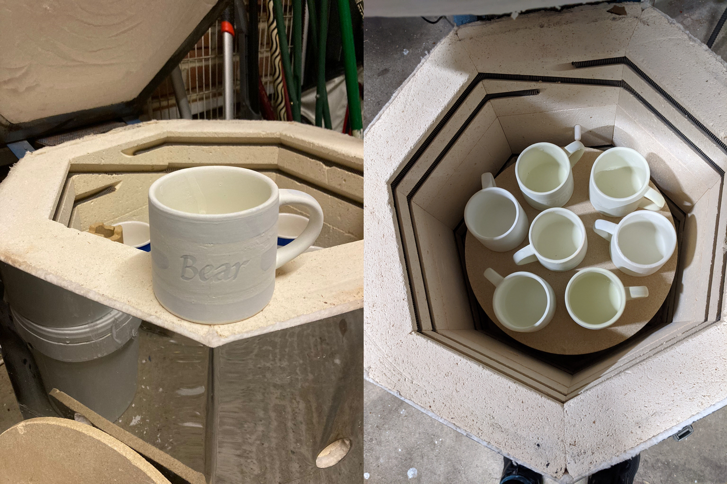Once they have been painted, they are then glazed and put into a kiln to fire. The glazing process gives them their deep colour and shine. It also makes them dishwasher safe. The firing process takes 24hrs and then they are ready to be dispatched.